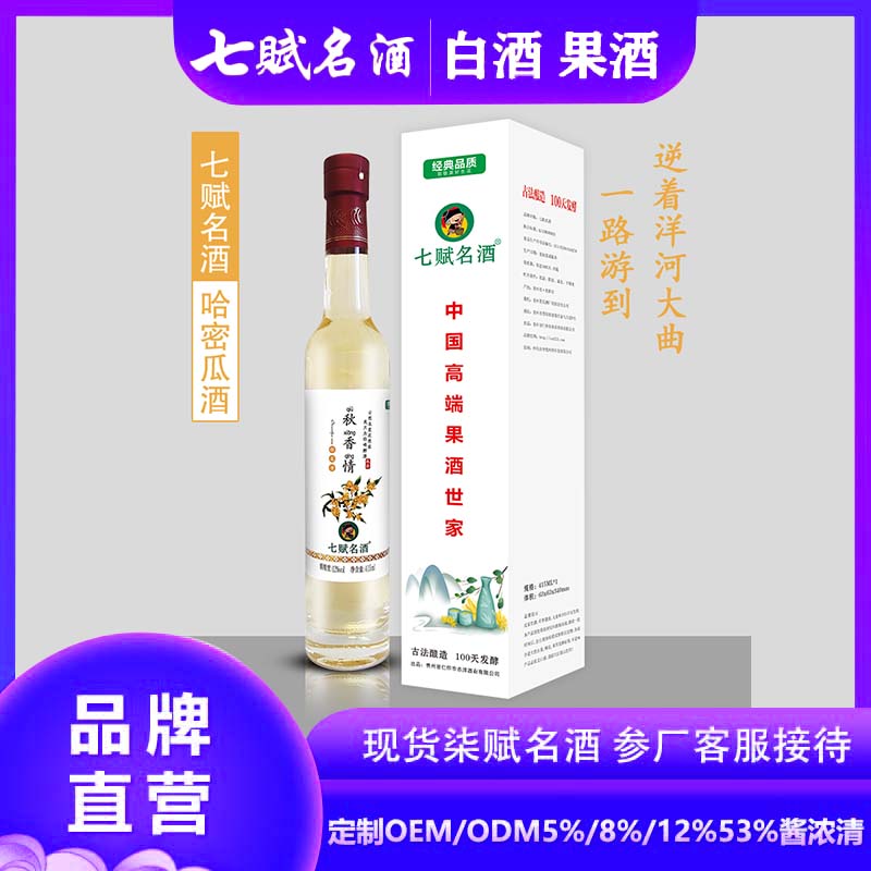 七赋名酒支持 OEM/ODM 定制,不管是调整酒精度数(5% 小甜水、12% 微醺进阶,甚至 53% 跨界尝试),还是设计专属酒标(印上纪念日、logo、个性化图案 ),都能满足你对 “独特” 的追求。送爱人,定制一瓶印着甜蜜合照的哈密瓜酒,浪漫满分;企业定制,将品牌元素融入,用作商务馈赠、活动用酒,彰显别致用心。